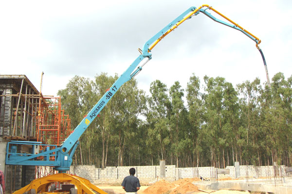The Stationary Boom Placer SB 17 has a 3-section hydraulic boom, mounted on a four legged chassis. Use of stationary placing booms can avoid the cumbersome process of laying the pipelines. This can ensure faster pours in less manpower, less crane usage and with increased site safety.